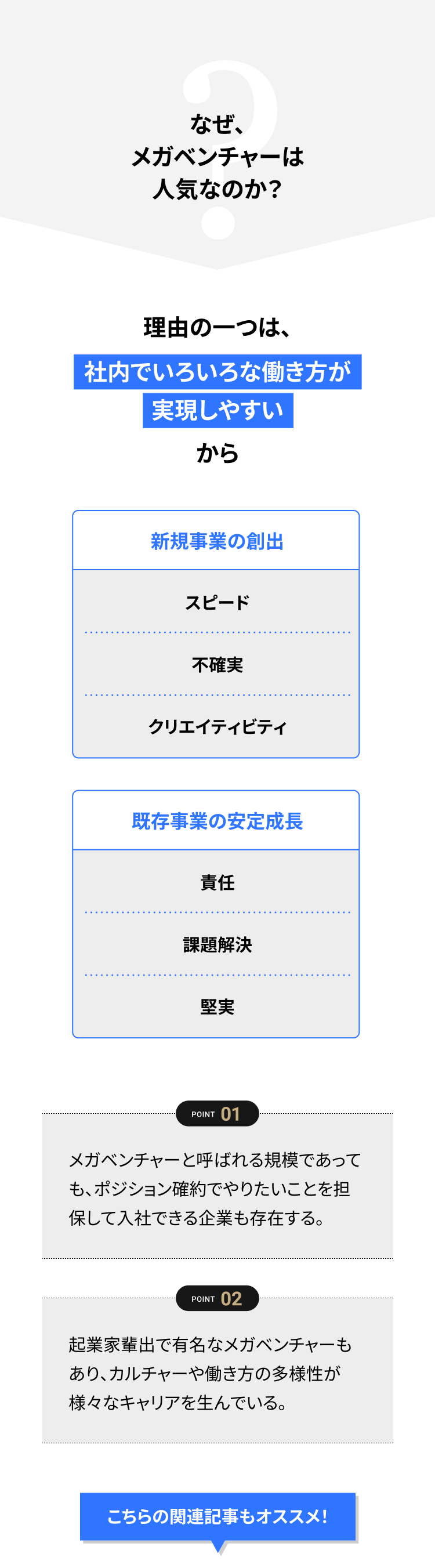 全3セクションにわたり、メガベンチャーキャリアを徹底図解しています。